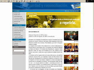 QUE NO SE OLVIDE. El 28 de Agosto del año 2,003 fue dado a conocer el Informe Final de la CVR en una ceremonia pública en el Palacio de Gobierno, en Lima. Eran algo más de doce tomos donde se narraban los hechos que caracterizaron los difíciles años de la lucha entre Sendero Luminoso y el MRTA contra el Estado Peruano: las guerrillas, los atentados, las masacres, las torturas, las desapariciones forzadas, las violaciones, los asesinatos selectivos… Casi setenta mil peruanos (militares, campesinos, gente del pueblo, guerrilleros también) muertos por la violencia y la insanía de algunos locos con acaso buenas intenciones. En este sitio web encontramos detalles del trabajo realizado para encontrar respuestas a los porqués de aquellos años terribles, una relación de desaparecidos, entre otras cosas, destacando la transcripción de aquel Informe Final (quizás el documento más importante de la historia reciente del Perú), que todos los peruanos deberíamos conocer. Muchos podrán poner peros a este trabajo pero lo que no se puede negar es que «un país que olvida su historia está condenado a repetirla»… Quizás ya lo estemos haciendo.