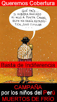 Podrían señalarse tantos culpables: el Gobierno (el Central y el de Puno) por no preveer efectivamente los efectos del frío; el Gobierno por dejar pasar los días y las semanas; los congresistas por perder el tiempo en discusiones tontas o en tapar sus cochinadas; la Oposición por no dar opciones constructivas; varios periodistas y sus patrones por quedarse callados cuando debían informar; los capitalistas extranjeros que presionan y hacen lobbies; los Dirigentes que echan leña al fuego; los ciudadanos que elegimos mal… mientras, la gente muere, mas para los que viven más afuera del Perú que adentro, que viven mirando Miami o Europa o cualquier otro lugar del mundo, algunos de cuyos hijos enfermaron por ir a Punta Canas, es como si fueran muertos de otro continente. Son pocos, pero son… los que podrían hacer algo. El Perú somos todos, estamos unidos a él por nuestros muertos enterrados y por nuestros hijos nacidos. No tenemos el mismo color de piel, no tenemos la misma educación, no ganamos lo mismo, pero somos hermanos. Y nuestras responsabilidades son compartidas.