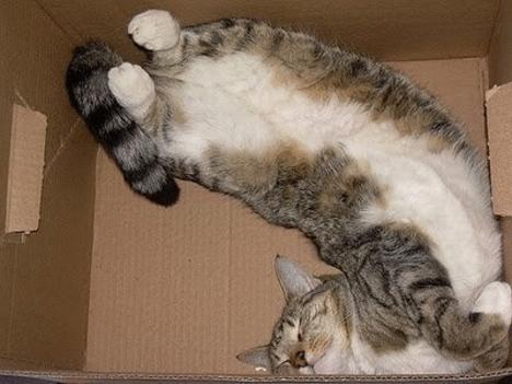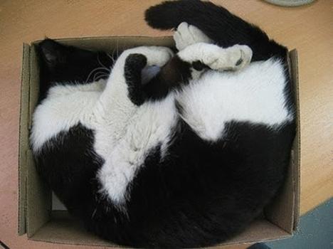 1. Yo tengo un post programado de gatos entrando y saliendo de cajas para jugar… pero esa galería flickr es un WOW tamaño gigante. Por alguna razón los gatos tienen una fascinación por dormir apretados… 30 soles de cama al tacho, vencidos vilmente por la caha del DVD, digo yo…
