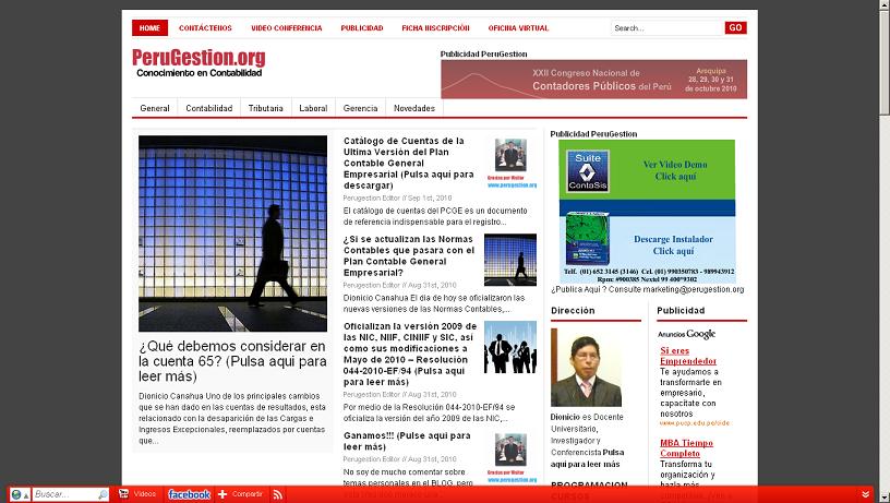 AL DIA CON LAS NORMAS. Perú Gestión, el blog del colega CPC Dionisio Canahua, este año obtiene la consagración en su categoría luego de una reorganización de sus artículos para darles mejor presentación, pero siempre con un lenguaje bastante ágil. Recomendable para colegas y empresarios.