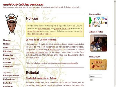 CRÓNICAS DE LA TIERRA MEDIA. Todos conocen El Señor de los Anillos, la monumental obra del profesor británico J.R.R. Tolkien, aunque sólo sea por la adaptación cinematográfica de Peter Jackson. Leída con veneración junto con su serie de libros anexos y derivados, esta historia épica y humana, fantástica y profunda, llena de acción, profusa de datos y de esmerado detalle en su ambientación de un mundo ficticio, ha hecho el deleite de los aficionados a la literatura fantástica por más de cinco décadas. Sus fanáticos no son pocos, y (cosa común en nuestro friki mundo) no han faltado iniciativas de asociatividad; la más notoria, las Sociedades Tolkien. La versión peruana fue fundada en el año 2001, y está dedicada (como todas las demás Sociedades Tolkien alrededor del mundo) al “estudio, discusión, difusión y disfrute de la literatura mítica y de fantasía, comenzando por la obra de J. R. R. Tolkien”. Para ello realizan eventos y actividades regulares: un programa en una radio on line llamado La Hora de los Cuentos Perdidos, por ejemplo, pero también sesiones de lectura, maratuldas (suerte de iniciaciones para los nuevos miembros), fiestas, conferencias, viajes… todo para la confraternización entre los aficionados a lo fantástico. En su website puedes encontrar información de todo ello, lo mismo que en sus facebook, grupo Yahoo, canal Youtube y twitter oficiales. Apto para hobbits, elfos, enanos y humanos.