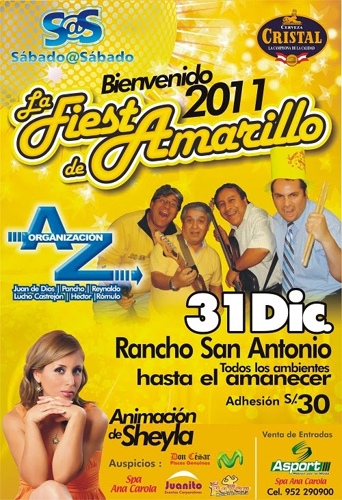 • En el Rancho San Antonio desde las 9 PM y a un costo de S/.30, se lleva a cabo La Fiesta de Amarillo con la animación de la popular Sheyla y musicalización de Organización AZ.