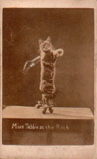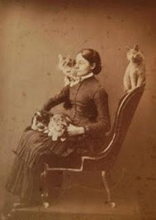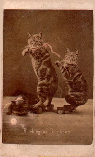 Sin embargo, los LOL-Cats no son una novedad tan reciente. Como mucho de lo que tenemos ahora sus orígenes se pierden décadas atrás. En este caso específico podrían rastrearse fotografías del tipo LOL-Cat hasta finales del siglo XIX cuando cierto fotógrafo inglés retirado del ejército que residía en el puerto de Brighton se hizo famoso con una serie de “carte de visite” que mostraban gatos (casi siempre los suyos) en actitudes y gestos humanos, más un texto inserto para llamar más la atención. The Brighton Cats se conoce a esta serie y se dice que llegó a estar compuesta de 200 imágenes, haciendo las delicias del público de la época… algo parecido al posterior caso de Louis Wain, aunque el buen Mr Pointer no acabara en un manicomio y en vida gozara de gran prestigio y reconocimiento, siendo su obra conocida en toda Europa, que no incluyó sólo fotografías de gatos sino también de perros… ah, sí, y también de gente.