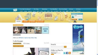 LOL-CATS A MI. Indispensable web para todo fan de los Felis Domestic, I Can Has Cheezburger? (Traducción: ¿Puedo tener una hamburguesa de queso?) tiene fotos. gifs animados, videos, noticias y curiosidades de este gato mundo. Claro que casi todo en inglés, ¿o debería decir gatánglico? Ahora bien, a la pregunta ¿Porqué el nombre? ¿Qué tiene que ver una hamburguesa de queso con un gato? Ni idea, se supone que es una ocurrencia de los gatonautas yunas para los que es artículo de fé que a los gatos les gustan. Dejémoslo así, que discutir vernacularides es inútil. Sólo disfruten el material.