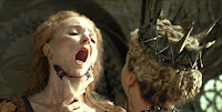 Y sin embargo, hay flores en el Bosque Oscuro. La actuación de Theron que llena la pantalla con su presencia, a pesar de algunos disfuerzos, la de Chris Hemsworth (en su papel de Eric, el torturado cazador del título. Si les resulta conocido es porque es el Thor de The Avengers), las secuencias de los enanos, la presentación del mismo Bosque Oscuro (verdaderamente ominoso en su tenebrosa estampa)… Pero al final el guión y la misma realización hechan por tierra lo que quizás en otras manos hubiera tenido mejores resultados, quizás poniendo más énfasis en la parte oscura. La verdad ni las referencias a Mononoke Hime (una de las mejores obras de Miyazaki-sensei) me han llegado a ilusionar.
