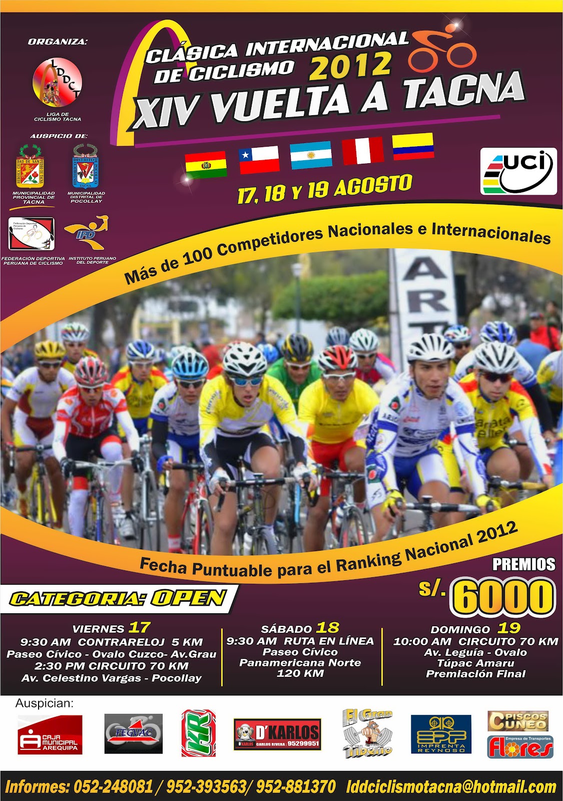 También como parte de las celebraciones por el aniversario de Tacna de la próxima semana se llevará a cabo la tercera etapa de la Clásica Internacional de Turismo XIV Vuelta a Tacna, en esta ocasión en la ruta de Tacna – Boca del Río – Tacna. La partida se hará a las 9:30 AM en el Paseo Cívico y en el segundo óvalo de la Panamericana Sur.