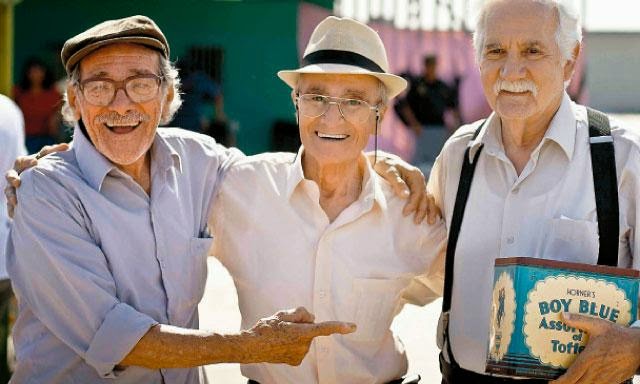 Y eso sería todo en cuanto a la trama: tres amigos (cuatro si contamos a las cenizas en la caja de galletas) dando vueltas por lugares representativos del Callao, recordando anécdotas del Sport Boys y de sus mataperradas de chicos, y encontrándose por allí no sólo a la viuda indignada por el “secuestro” de su marido que los perseguirá, sino también a algún conocido y a la guardia nueva del puerto y de la hinchada del Boys. Evidentemente no están para muchos trotes, y su condición e idiosincrasia de octogenarios los lleva a no pocas situaciones incómodas y aventuras en una largo adiós a toda una época.